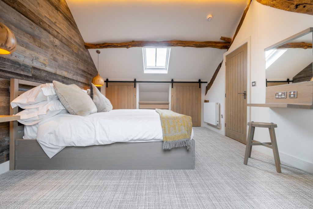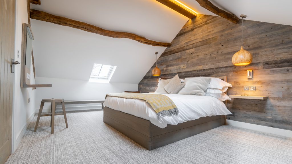 In the bedroom you’ll notice original beams across the ceiling. Whilst we replaced the roof entirely when we renovated the property with new modern structural oak beams hidden out of view, we replaced these sixteenth century beauties for aesthetic purposes and we hope you’ll agree they help retail a lot of the original character.