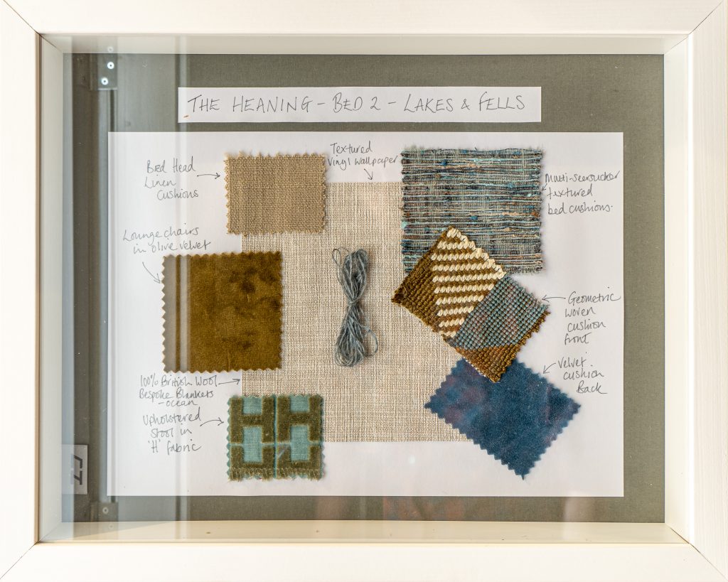Outside each bedroom you’ll find a storyboard explaining the design concepts. Every room was planned individually to reflect a certain colour and theme, including a mix of Lakeland comfort with traditional materials and fabrics alongside the clean, crisp lines of Scandi chic.